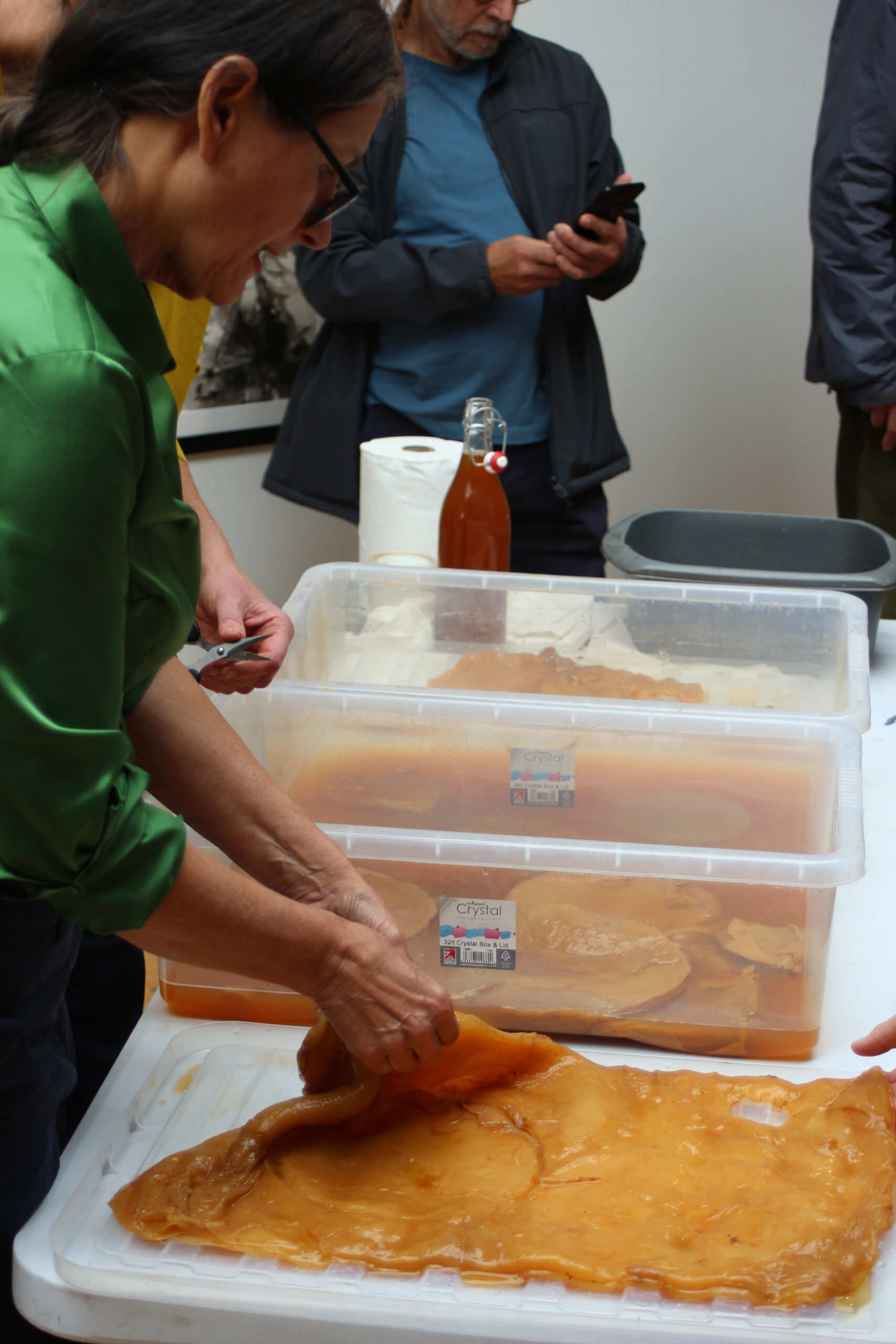 In 2023 Jane’s microbial cellulose project was accepted into the Future Materials Bank, Jan Van Eyck Academie, Maastricht as a Smart, biodegradable material for art and design. https://www.futurematerialsbank.com/material/scoby-3/