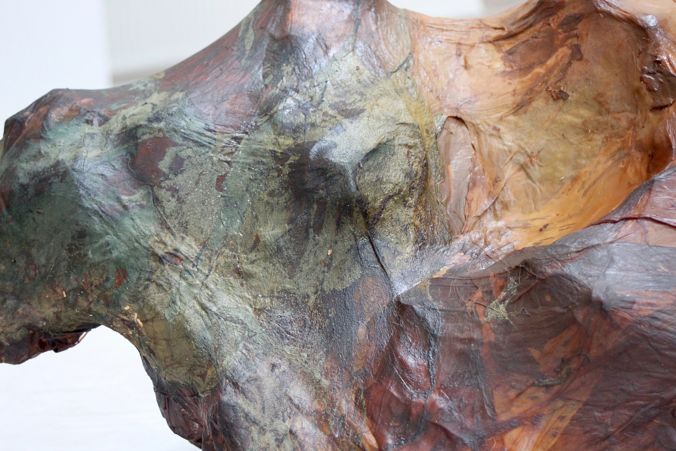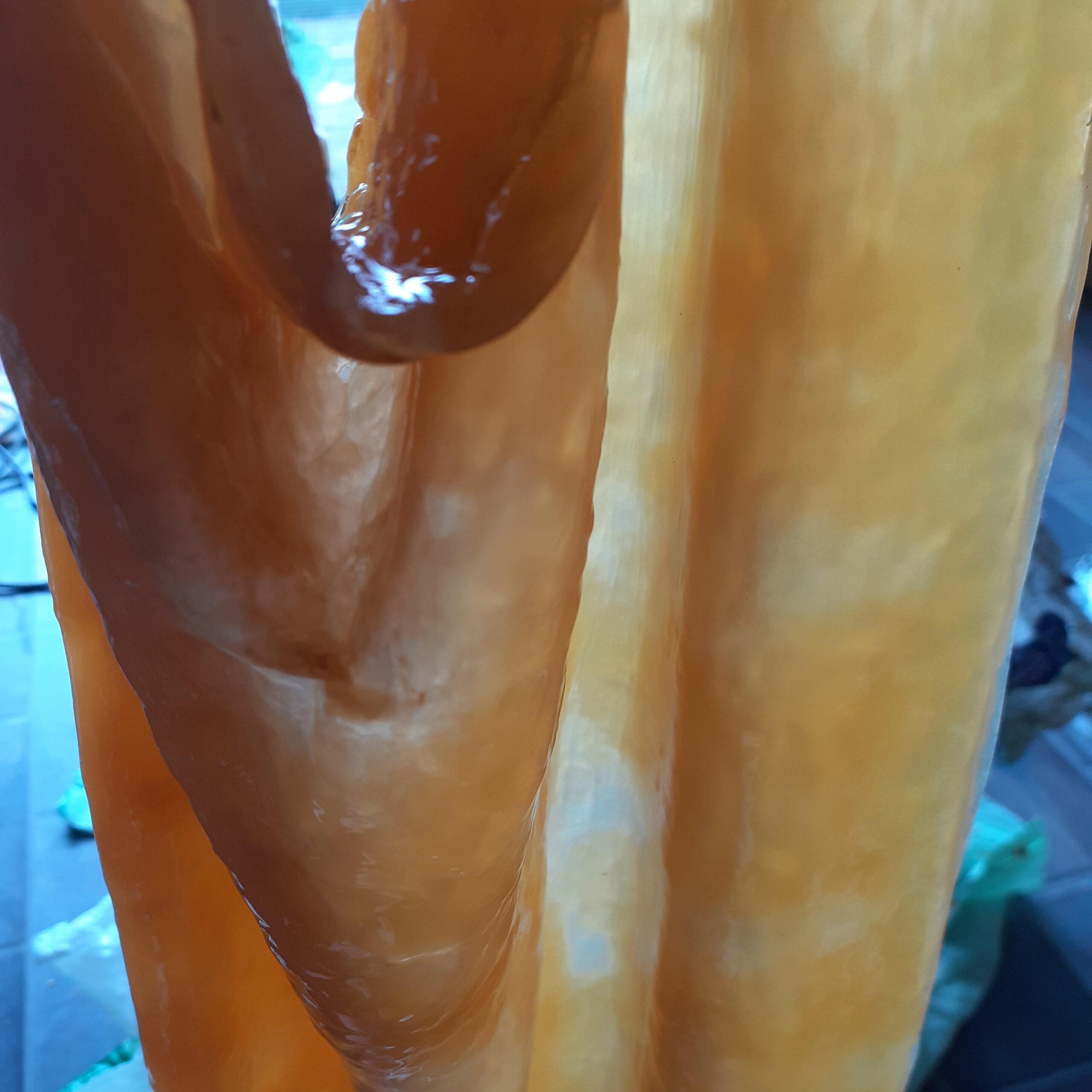 In 2023, Jane’s research using the probiotic microbial cellulose was accepted into the ‘Future Materials Bank’ at the Jan Van Eyck Academie in Maastrich. This is a resource bank sharing non-toxic materials for Art and Design. The microbial cellulose is a smart, bacterial, bioplastic, recyclable and regenerative material. Jane is specifically fermenting and harvesting the cellulose for its potential as a sustainable material for sculpture and to date, has made a collection of sculpture. She is particularly excited by the potential for breathing-in probiotics from sculptural forms in space; and for the treatment of burns and wound healing and so, in time we will see exciting developments within architectural living spaces and medicine.
