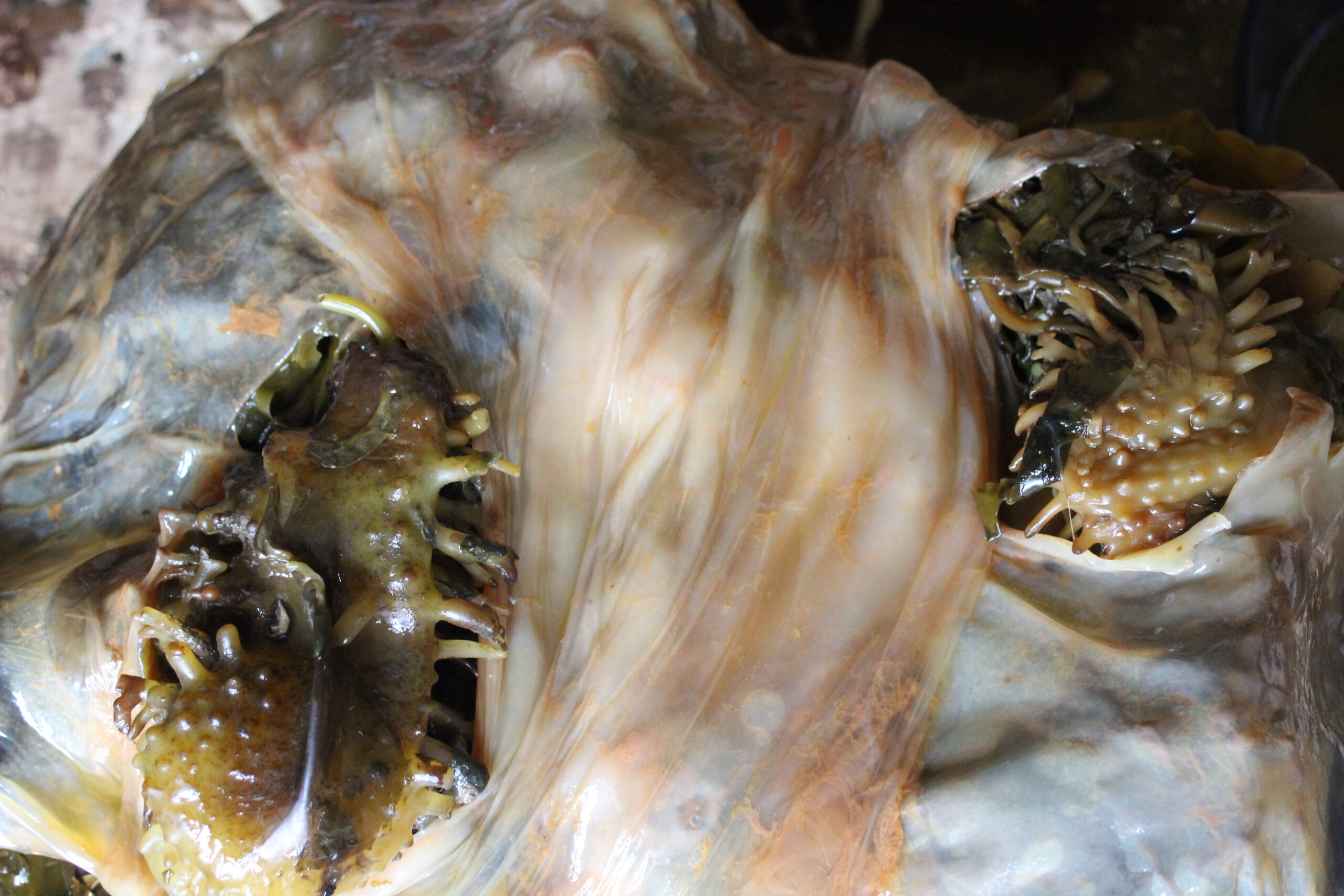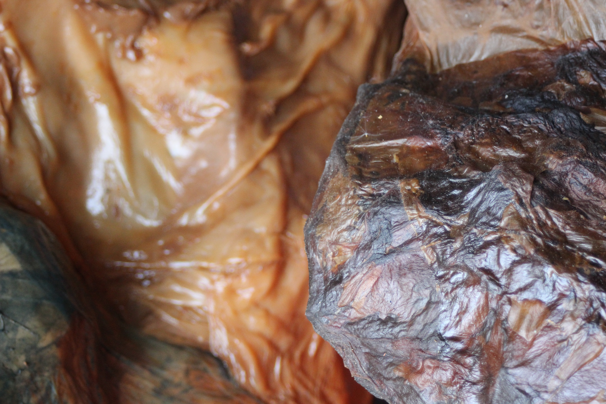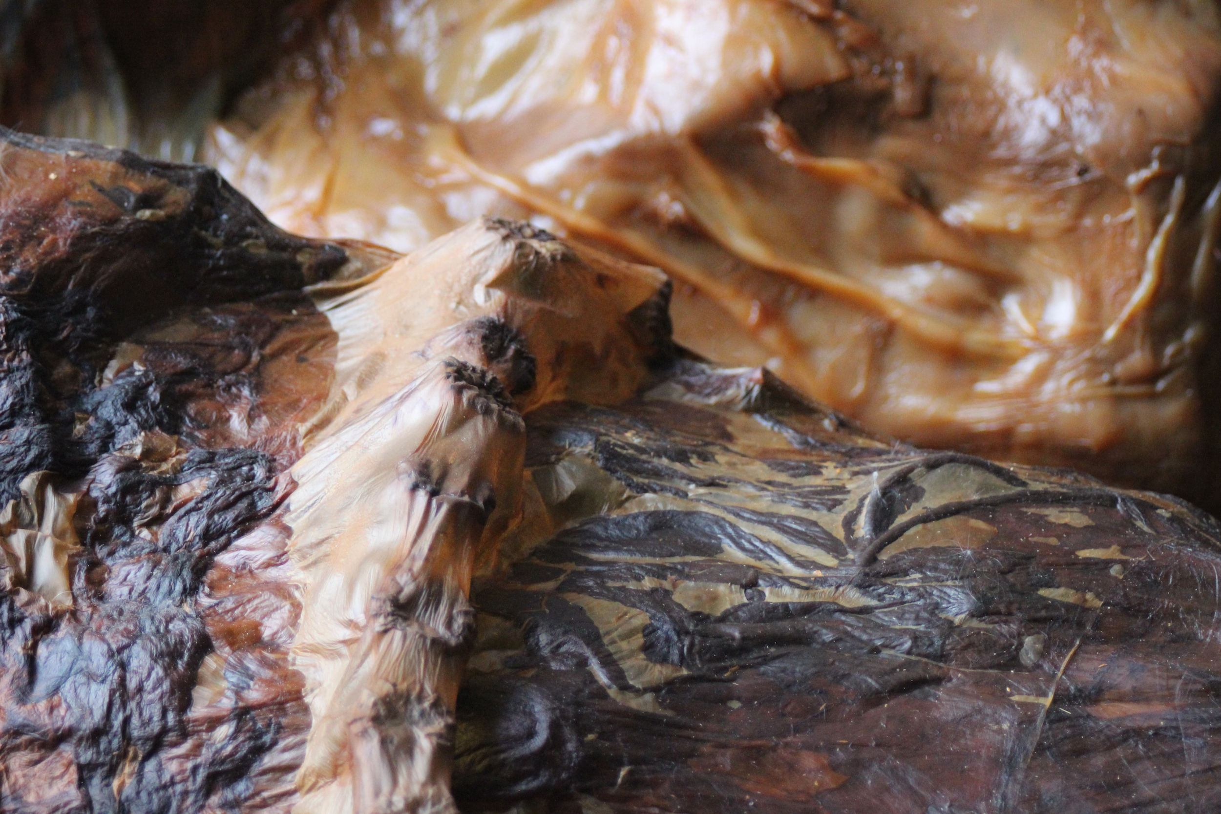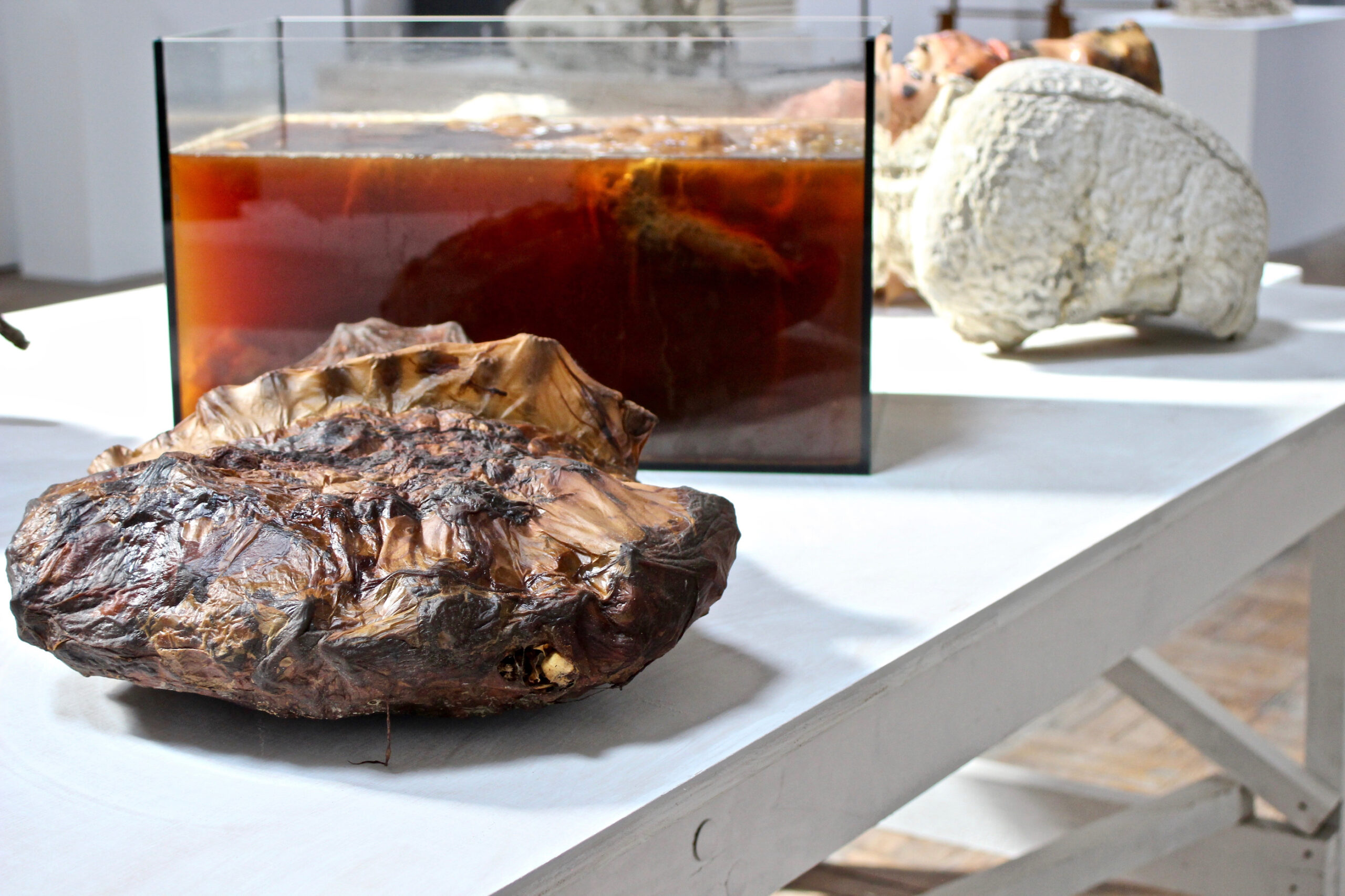 Here are sculptures made with probiotic microbial cellulose, kelp and mycelium inoculated straw.