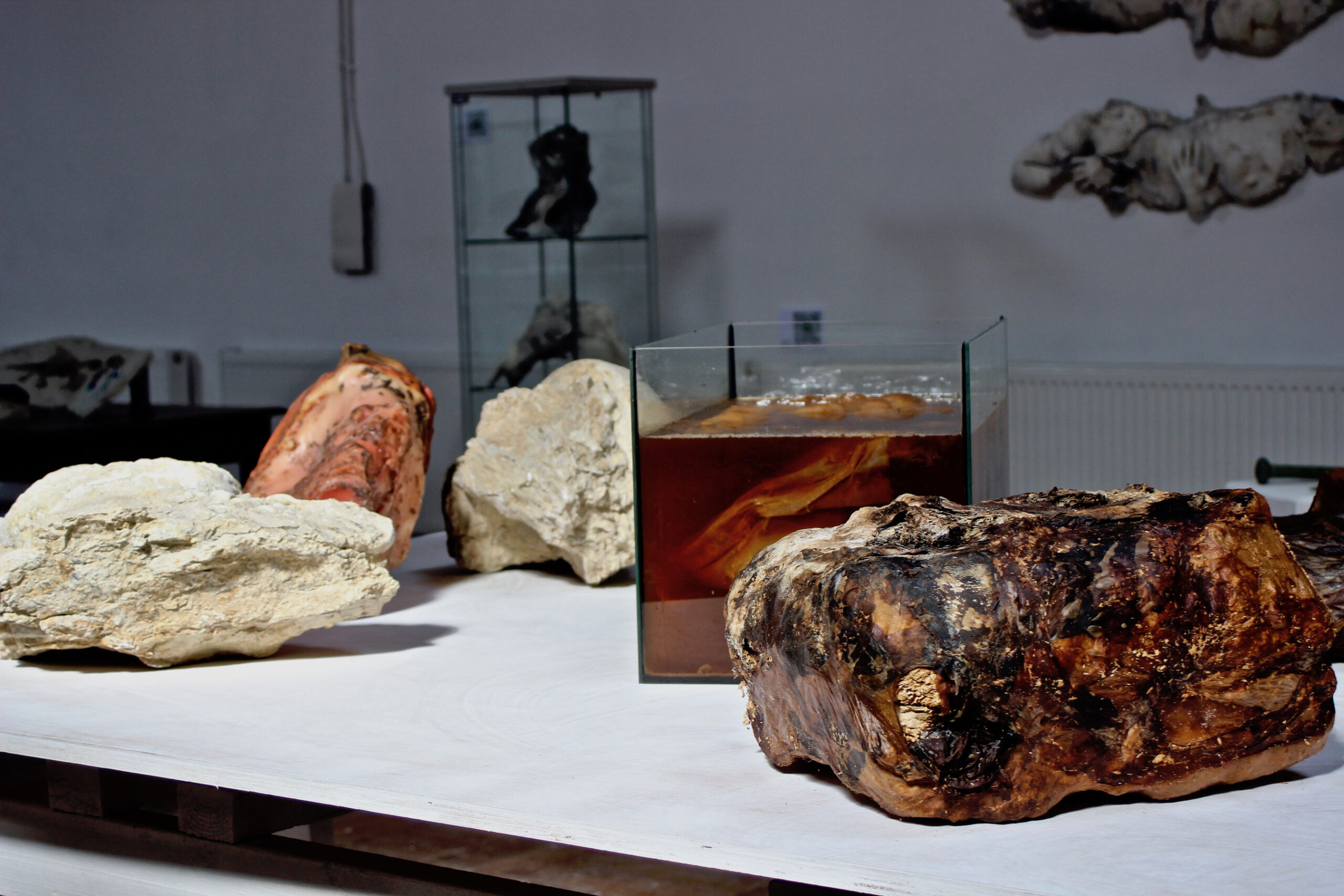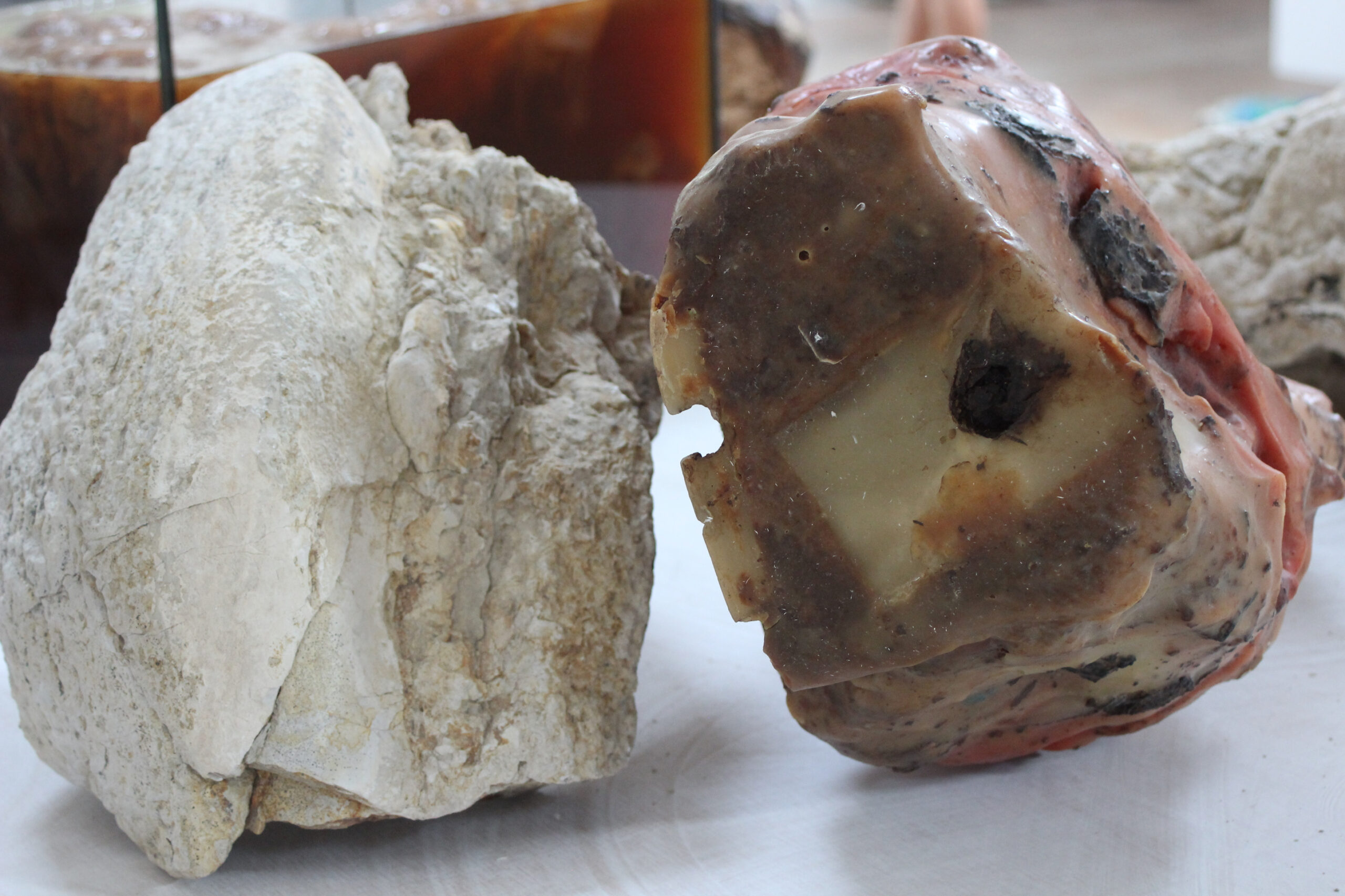 Jane Fox is growing biodegradable fossils using probiotic microbial cellulose and kelp. The fossils are inspired by the Stromatolite Fossils (layered rocks) at Portland. Stromatolites are constructed by the salivary secretions of Cyanobacteria.